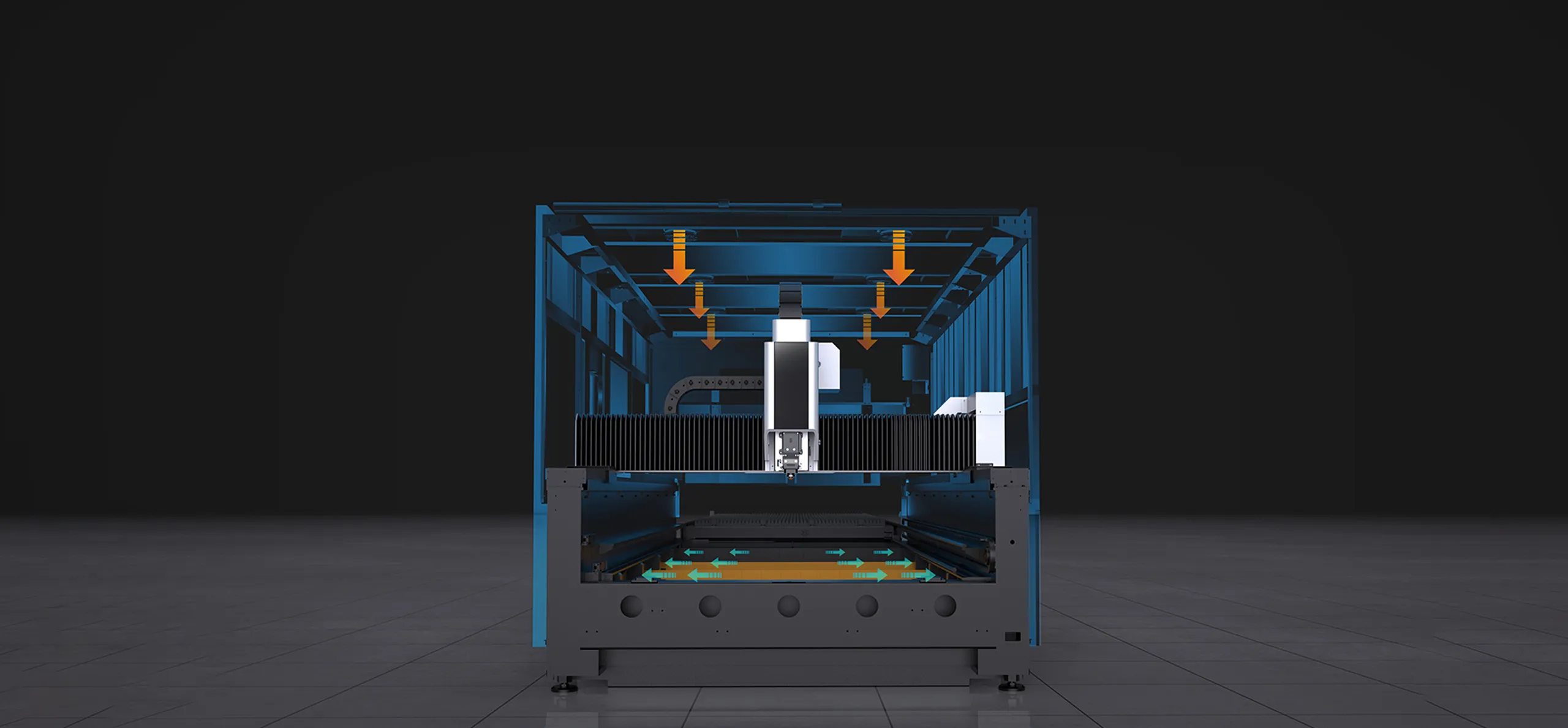 مُجهز بمنفاخ مغلق بتقنية القوة السفلية، يلتقط الغبار والدخان بفعالية، مما يُحسّن بيئة منطقة القطع.