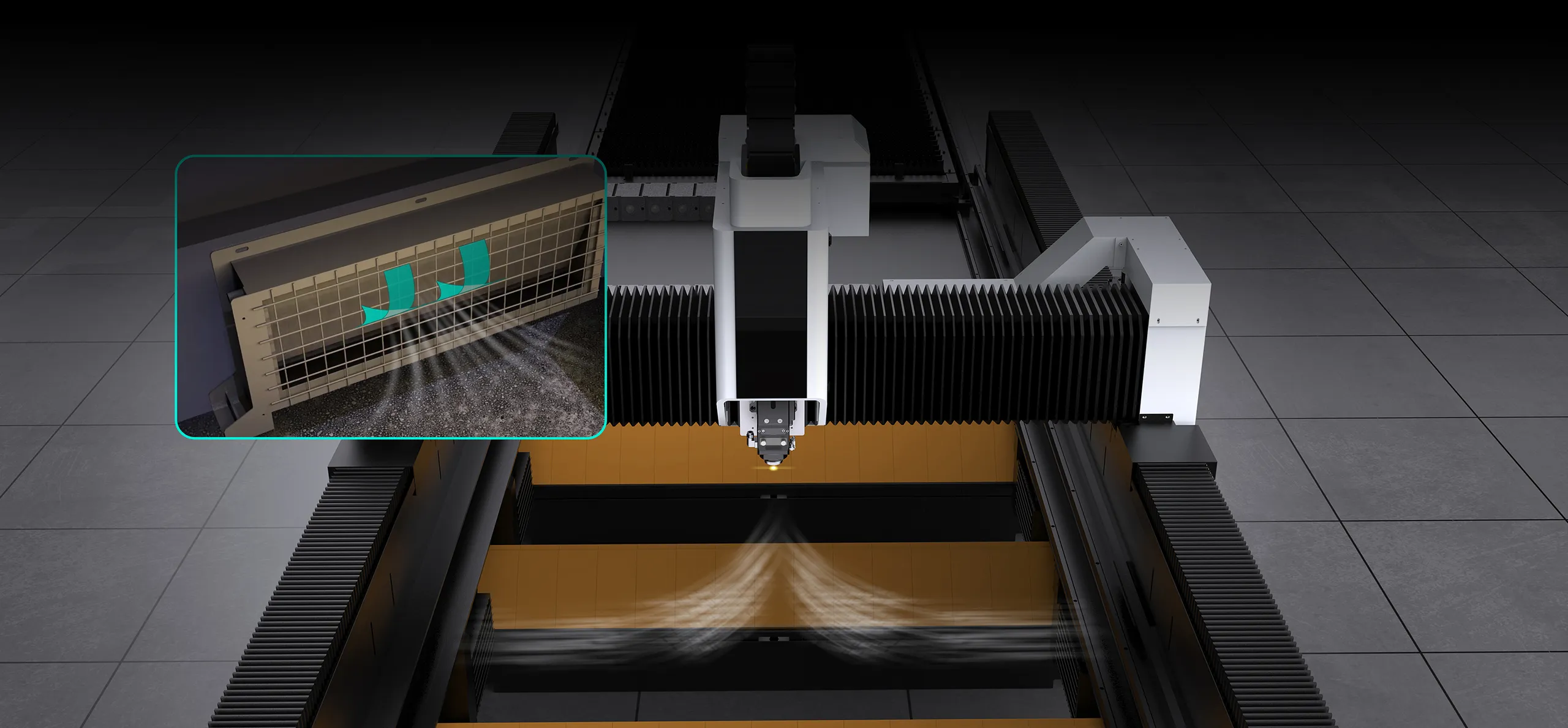 يحقق نظام جمع الغبار حسب المناطق كفاءة إزالة غبار تفوق 95%، مما يُحسّن بيئة القطع بفعالية.